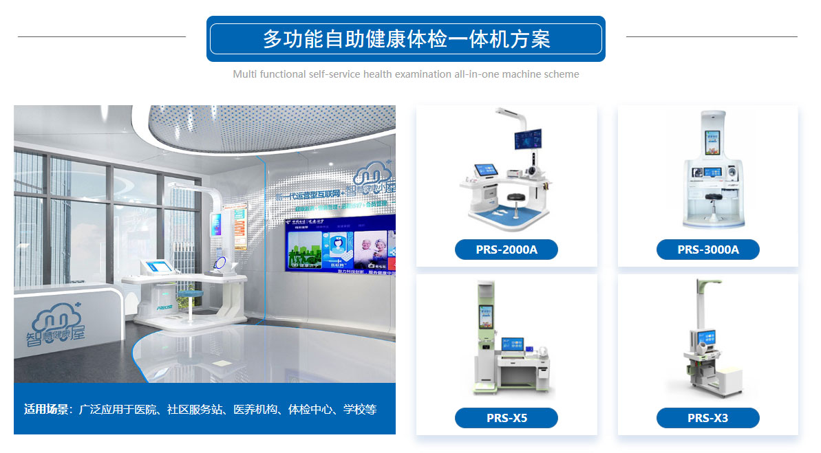 普瑞森健康體檢一體機可用身份證自助建檔5分鐘一站式自主測量人體健康指標。檢測項目包含:身高體重、血壓、中醫體質、電子視力等30+項人體指標,測量結果自動上傳至公衛數據采集系統。